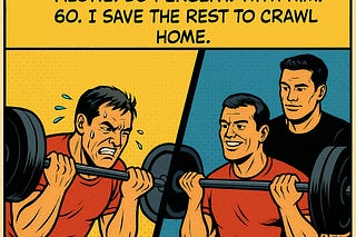 I can push 30 percent alone. My trainer helps me reach 60. The rest? I save it so I can walk home without calling an ambulance.